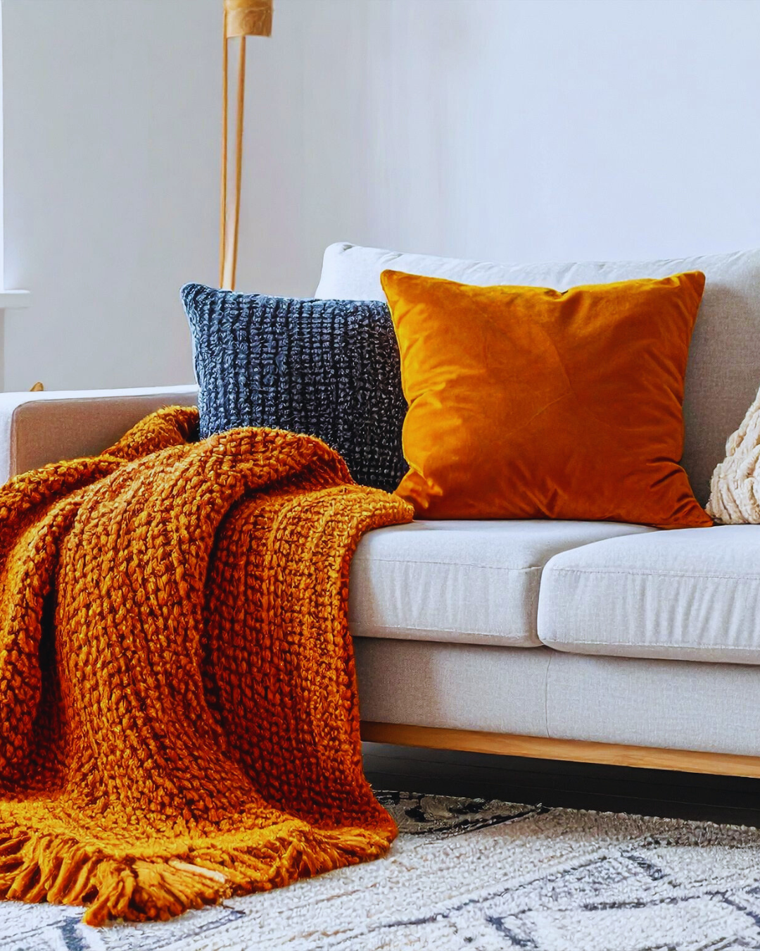 💡 Tip: jeśli nie chcesz wymieniać wszystkiego, po prostu schowaj letnie poszewki i dodaj 2–3 ciepłe kolory – efekt będzie natychmiastowy.
